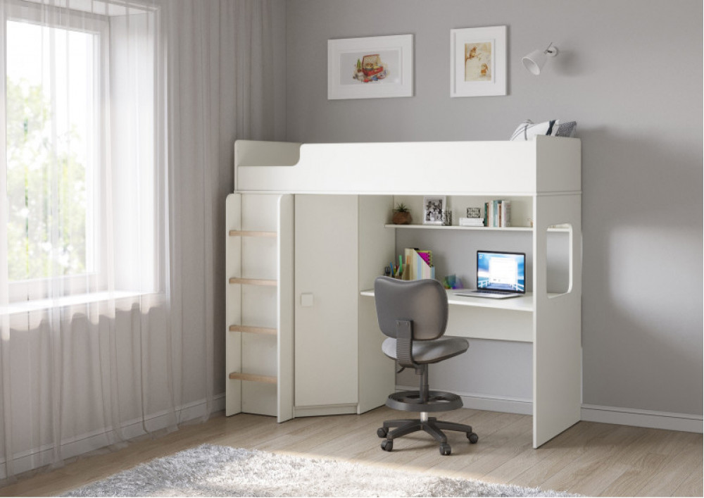 Учебная зона со столом под спальным местом открывает возможности для письменных работ,а также здесь удобно расположить ноутбук.