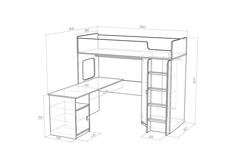 Учебная зона со столом под спальным местом открывает возможности для письменных работ,а также здесь удобно расположить ноутбук.