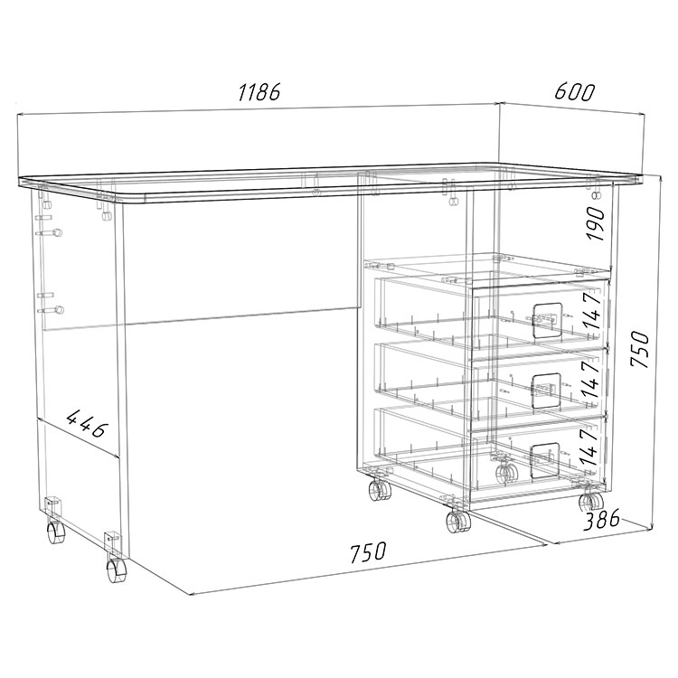 габариты (Д×Ш×В): 1186 × 600 × 750