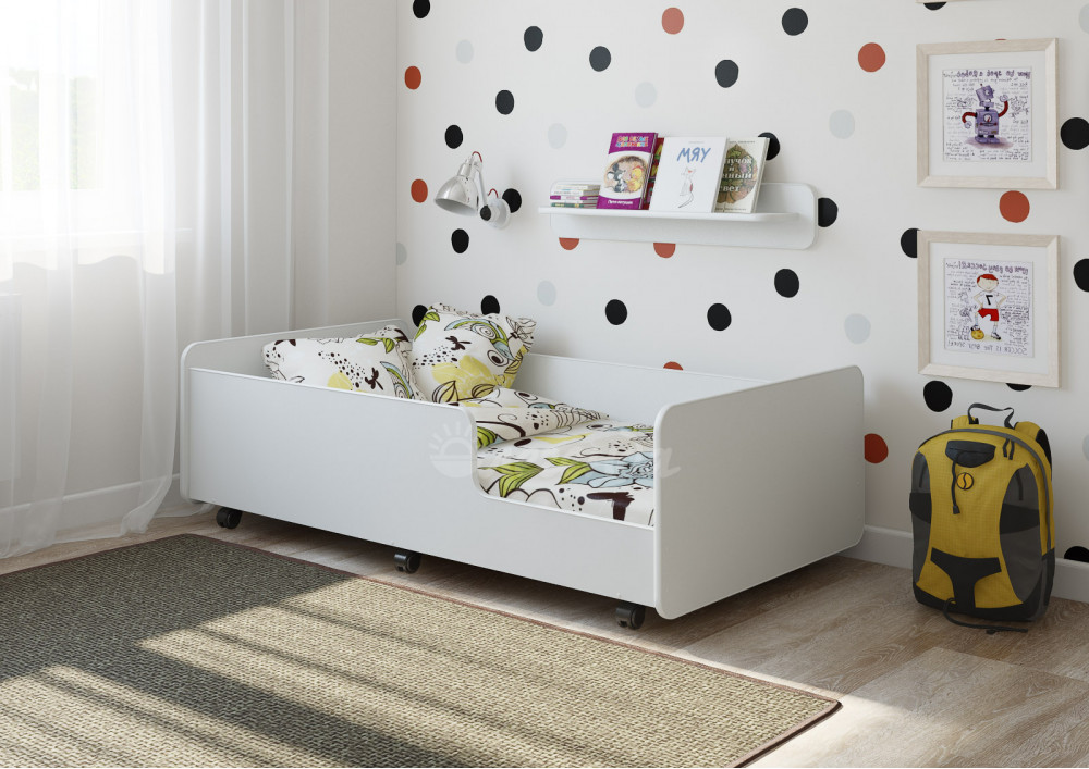 Боковые бортики и мягкий противоударный кант – дополнительная безопасность для спящего.